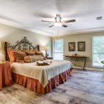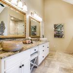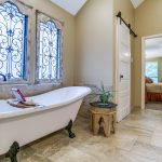 Family gatherings will please everyone with multiple entertaining spaces including a large front living room and a den with vaulted ceilings and a wall of windows to the backyard. Split bedrooms provide privacy for guests or owners working from home. Relax to your heart’s content in your new private primary suite with views out to the luscious backyard oasis. The remodeled bath is luxurious and has a tall vaulted ceiling, granite counters with two vessel sinks, freestanding claw foot tub, sliding barn door to lavatory, 2 walk-in closets, and porcelain “travertine-look” tile on floors and in the oversized frameless shower.