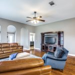 This lovely home features hand-scraped wood floors from the front door into the open kitchen with lots of cabinets, granite counters, and stainless steel appliances. The formal dining room could also be used as a study or music room. There is a spacious second living area that could also serve as a playroom or 2nd home office. The split primary suite has a soaking tub, separate shower, and large walk-in closet. Additional bedrooms are oversized and provide adequate storage. This home has a terrific covered back patio with fans and a porch swing.